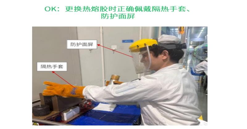 根據(jù)企業(yè)需求,識別安全作業(yè)時(shí)是否違規(guī)未穿戴防護(hù)裝置現(xiàn)存問題點(diǎn):更換熱熔膠時(shí),人員有時(shí)未按規(guī)范操作,易發(fā)生安全隱患,需現(xiàn)場語音提示并將該事件記錄解決方案:攝像機(jī)部署在工位上,識別人員手部有無佩戴隔熱手套,頭部有無佩戴防護(hù)面罩,若無觸發(fā)告警